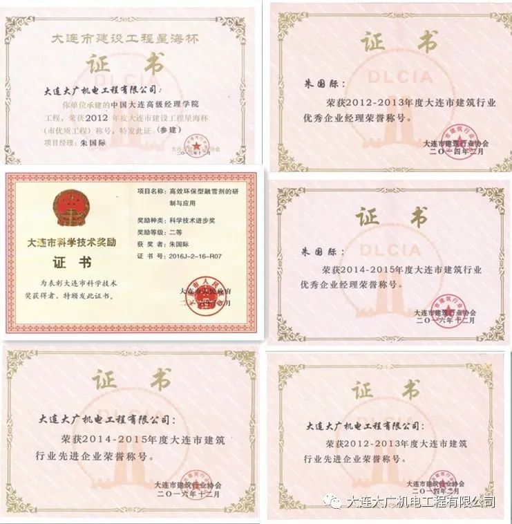 大连大广机电工程有限公司推行标准化管理,推广新技术,提高工程效率,提高工程质量,获得了社会信誉和行业荣誉。