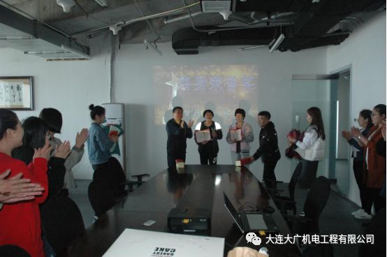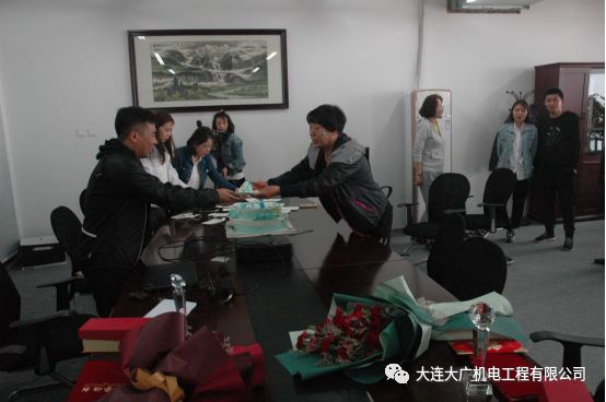 算下来孙姐在职十几年之久,李姐也在职五年多。大连大广机电工程有限公司永远记得并感恩每一名为公司倾心付出的成员,特由大连大广机电工程有限公司总经理朱国际先生和副总经理朱国庆先生分别给孙姐与李姐颁发“终身荣誉奖”奖状、奖杯、奖金,并献上鲜花。