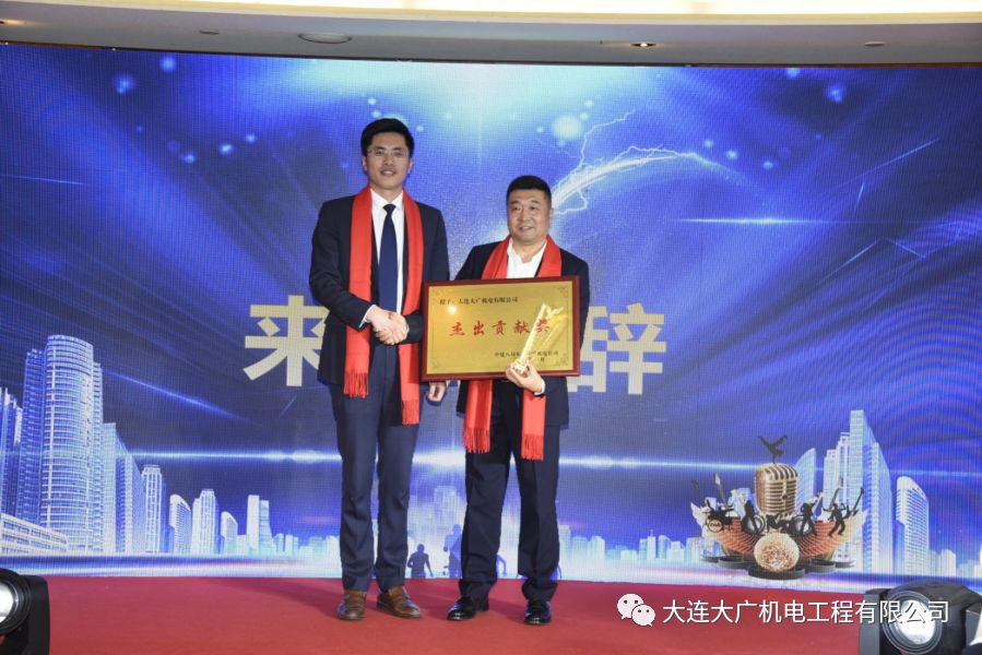 年会的特约嘉宾毕从福先生百忙之中拨冗出席,在致辞中表达了对大广机电的认可,同时也给予了一定的指导、鼓励。并在年会现场,授予大广机电“杰出贡献奖”。大广定不负领导期许,高标准,严要求,再创佳绩。